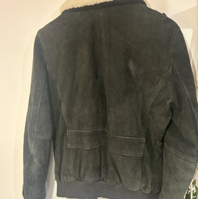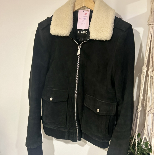 Superbe veste en cuir de chèvre rembourrée + moumoute ✨