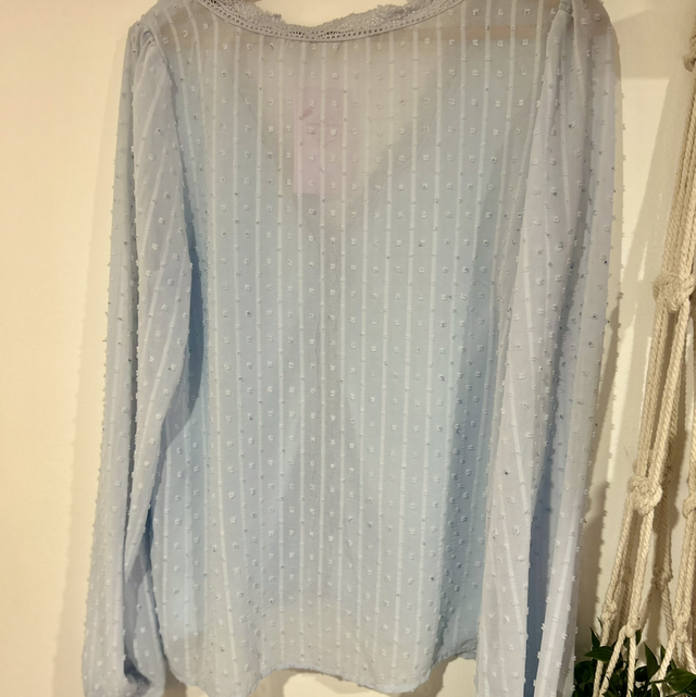 Jolie blouse plumetis bleue transparente sur les manches & le dos 🦋